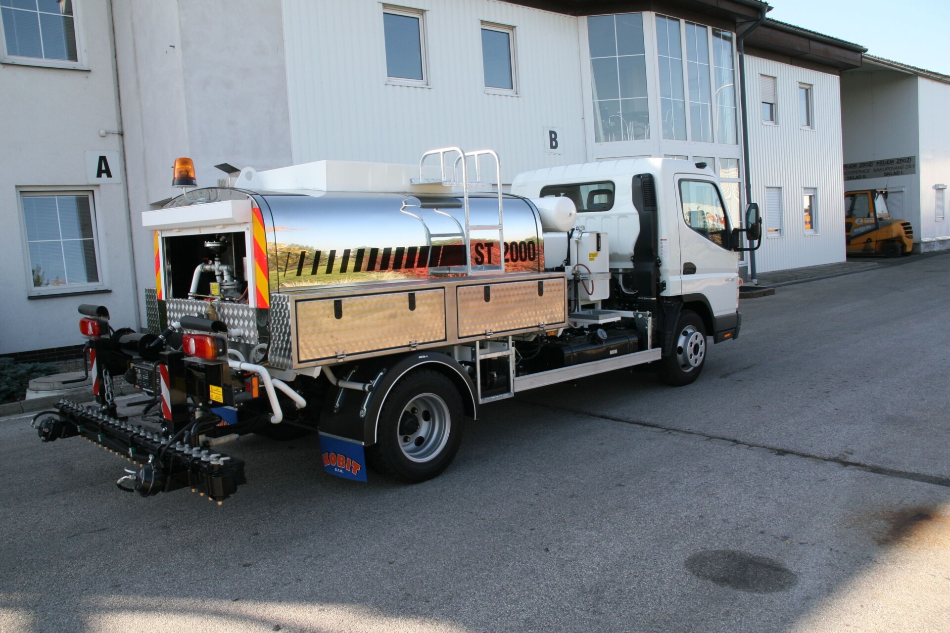 Zásobník na emulzi je izolovaný, vyrobený z ocelového/nerezového plechu, a obsahuje topný systém pro udržení optimální teploty materiálu. Ohřev náplně je řešen buď topnou rourou (přímý ohřev), nebo topným hadem s termálním olejem (nepřímý ohřev). Pohon výdejního/dávkovacího čerpadla může být řešen buď nástavbovým motorem nebo od hydrauliky podvozku.