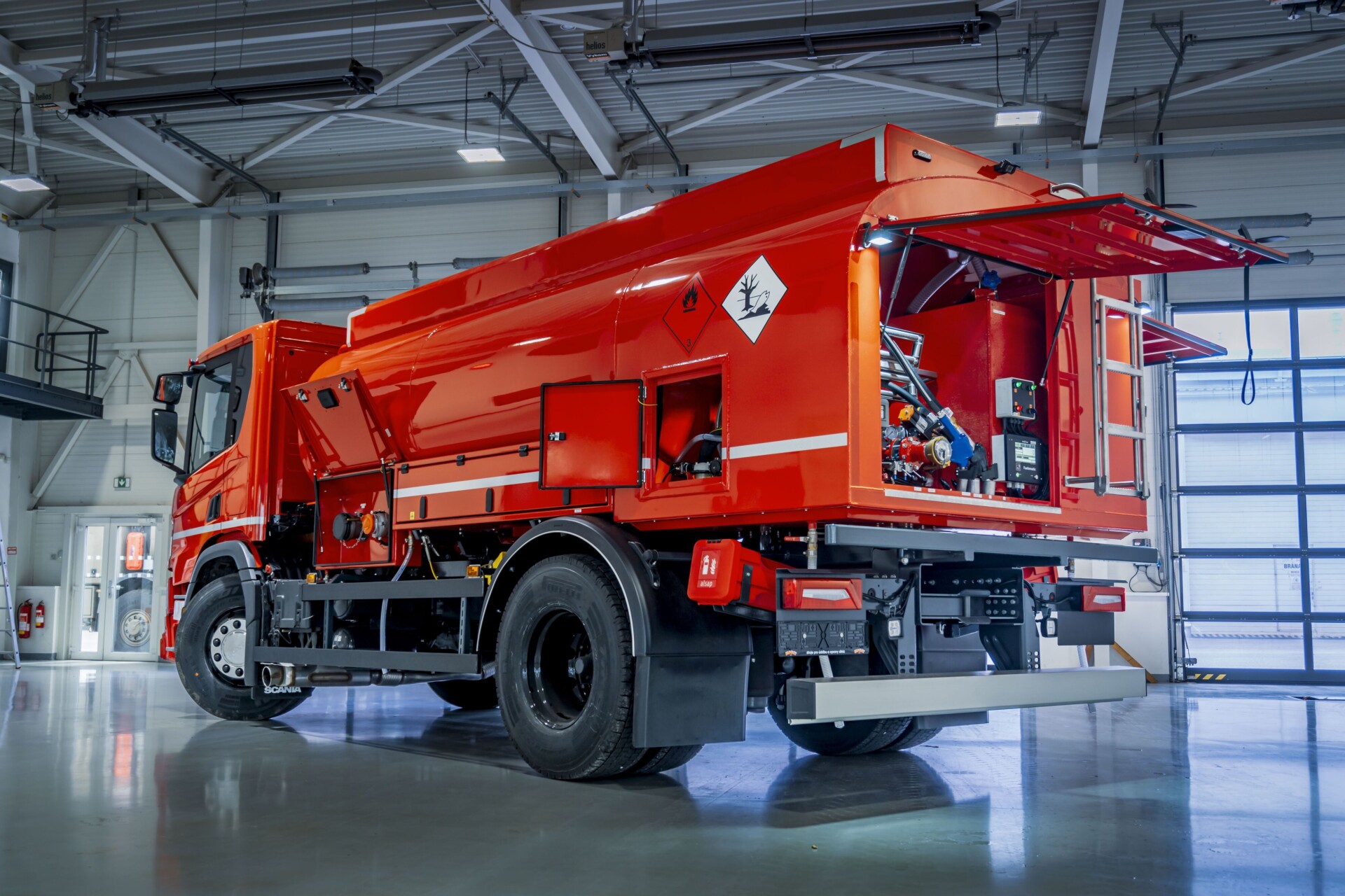 Cisternová servisní nástavba slouží pro přepravu a plnění stavebních strojů, vozidel a dalších mobilních zařízení naftou a AdBlue. Konstrukce nástaveb odpovídají všem předpisům pro přepravu nebezpečných látek ADR – tř. 3 UN 30/1202 – kód LGBF a je možné je namontovat pevně na libovolné podvozky o užitečné hmotnosti min. 12 – 18 tun.